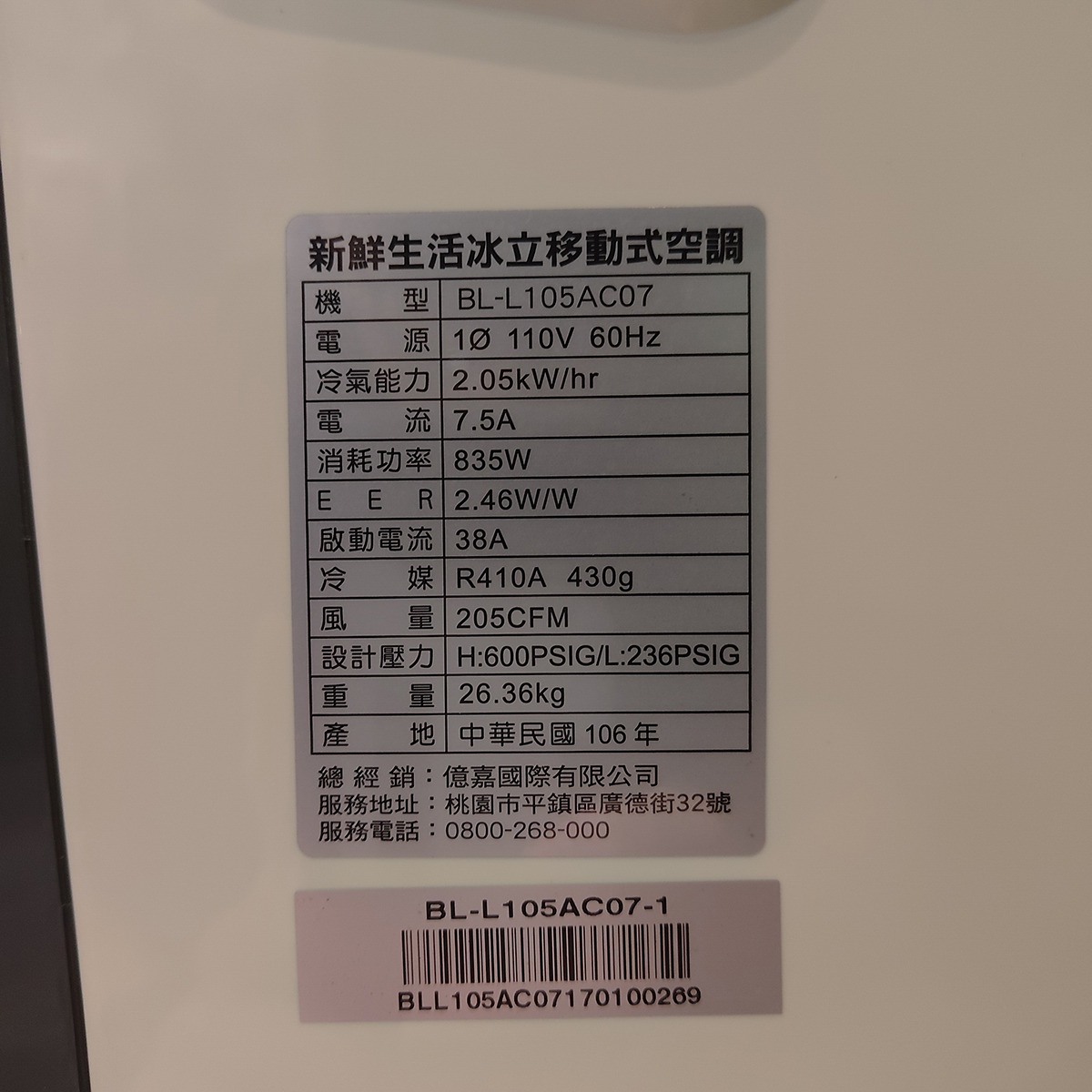 (保固30天)新鮮生活冰立移動式空調 BL-L105AC05 冷氣 冷暖 除濕 贈HAPA濾心*1 中古全新寄賣專門店
