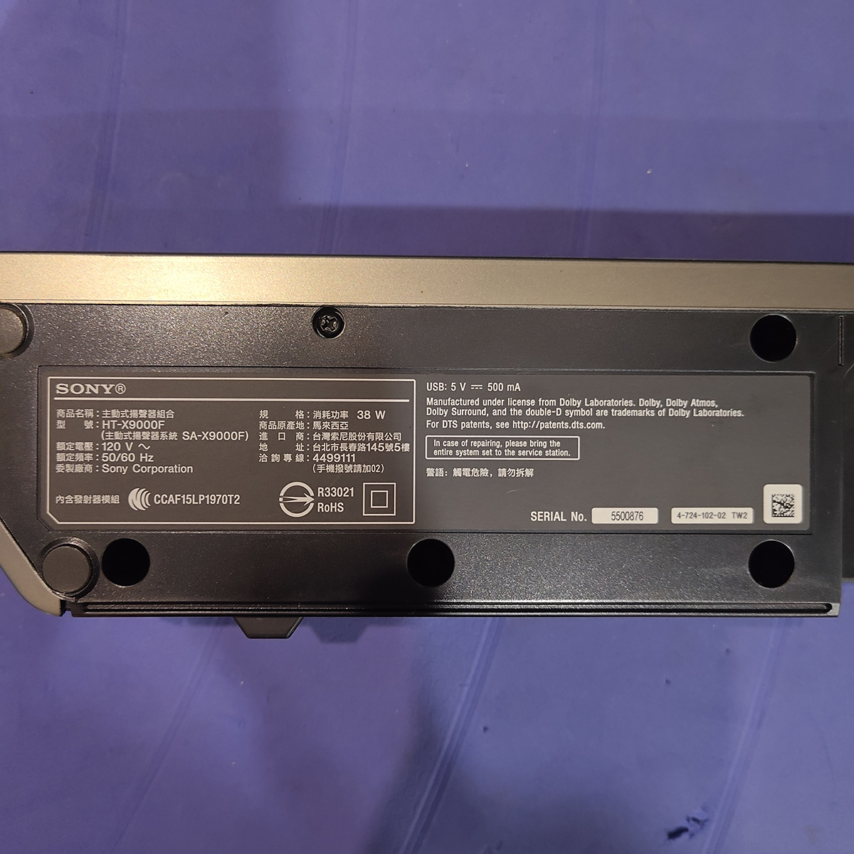 NCC 審驗合格編號: SA-X9000F/CCAF15LP1970T2、SA-WX9000F/CCAB17LP2520T4