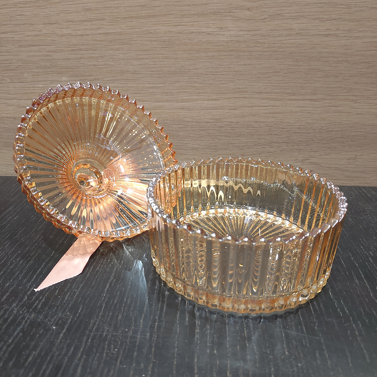 (全新)帶蓋收納水晶玻璃罐 蒙古琥珀款 直徑10.3 x 5 x 12.8cm 中古全新寄賣專門店